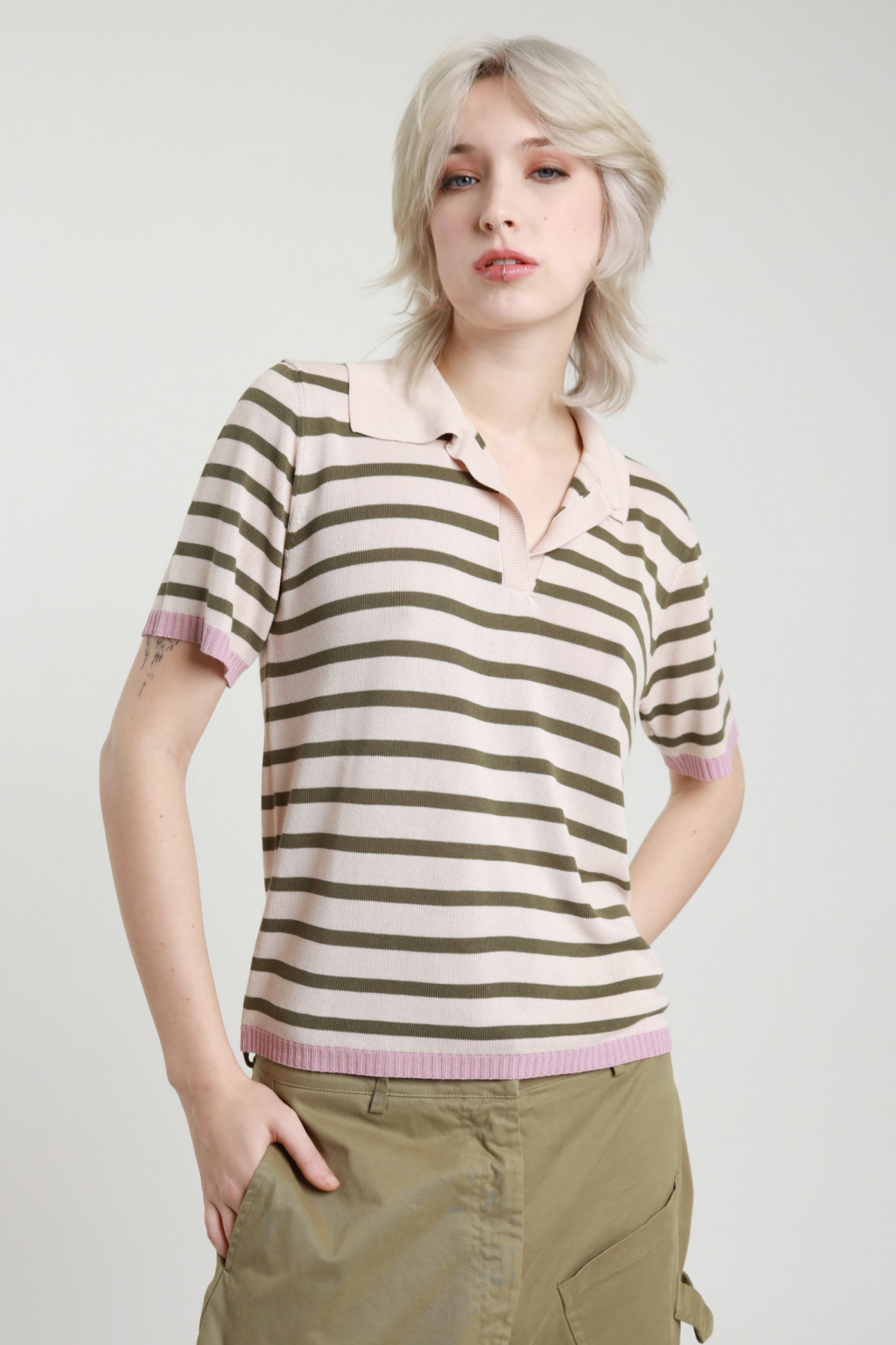 Polo Rigata in Viscosa, con Riga sui Bordi a Contrasto.
