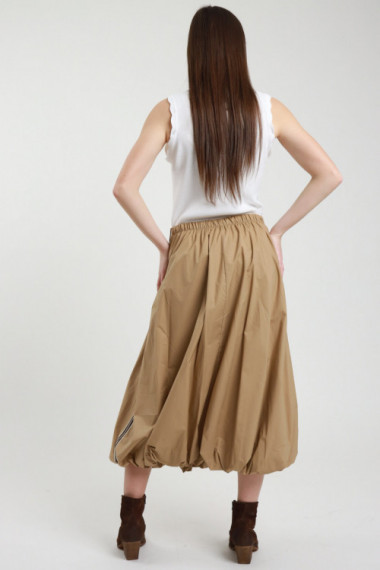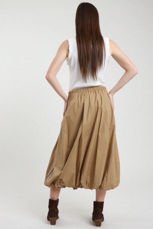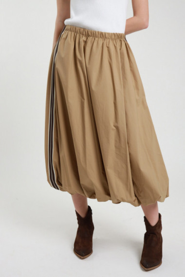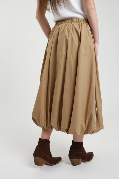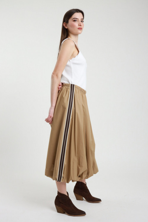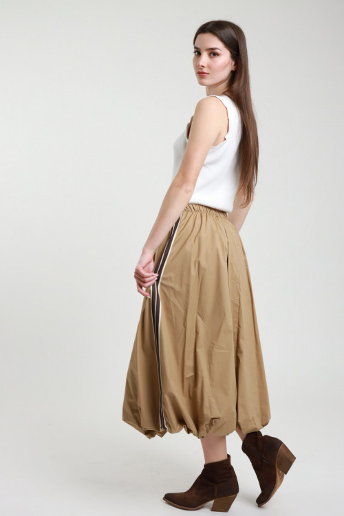 Gonna Lunga a Palloncino con Elastico in Vita con Bande Laterali.