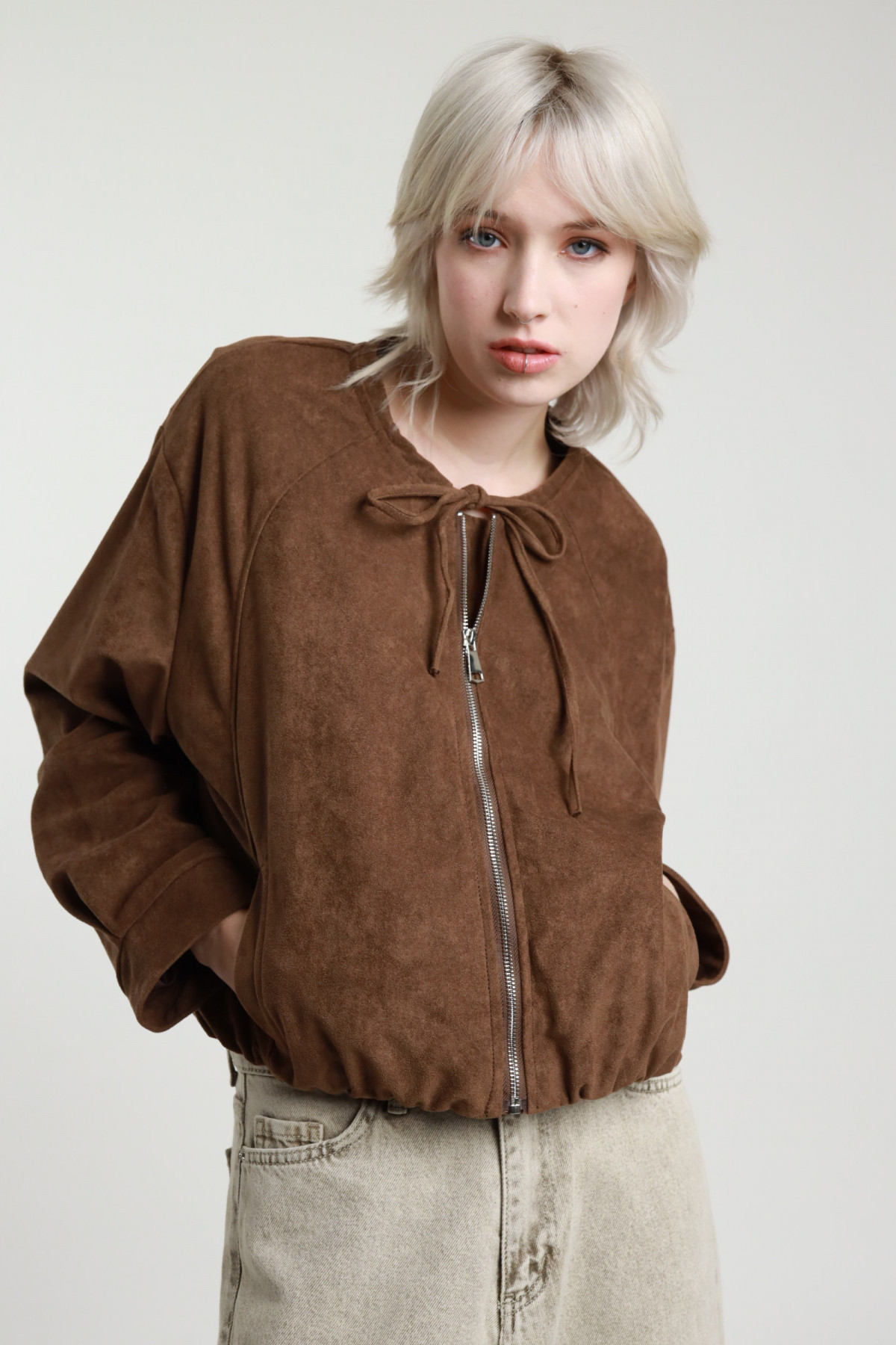 Bomber in Ecodainetto, Chiusura Zip + Laccetto Collo.