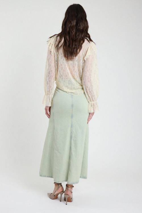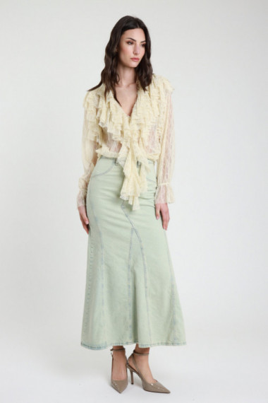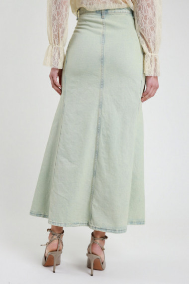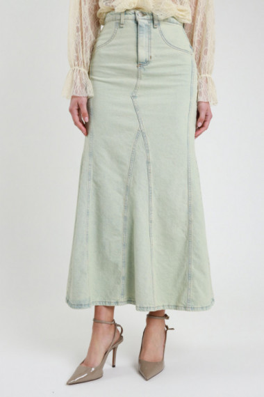 Longuette Sirena in Denim, Disegno Tasche sul Fronte, Passanti in Vita e Chiusura Zip e Bottone.