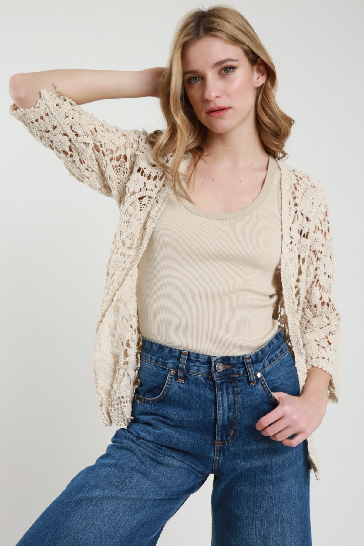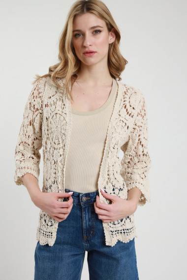 Cardigan Aperto, Maniche 3/4, in Crochet. 100%co
