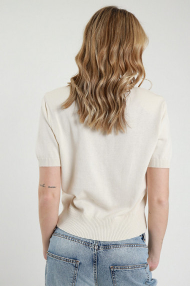 Maglia Giorocollo Maniche Corte con Spalline Imbottite, Bordi a Costine.