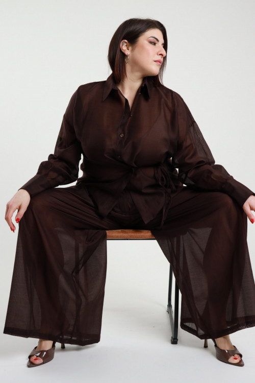 Pantalone a Palazzo 2 Tasche con Pences, Semitrasparente con Sottoveste Coulotte - Linea Curvy Susy Star.