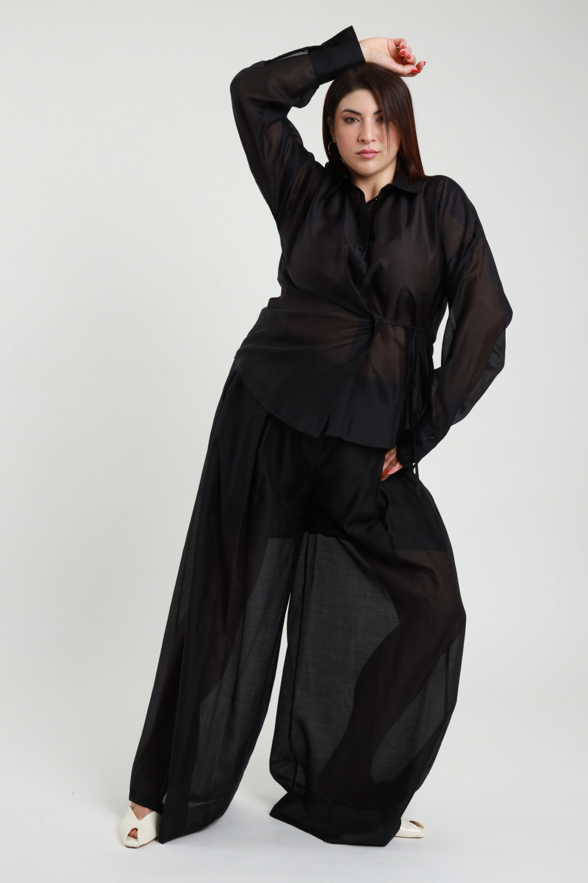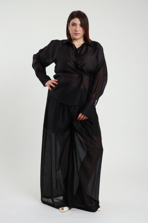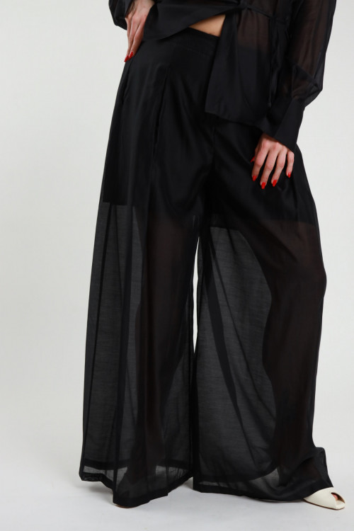 Pantalone a Palazzo 2 Tasche con Pences, Semitrasparente con Sottoveste Coulotte - Linea Curvy Susy Star.