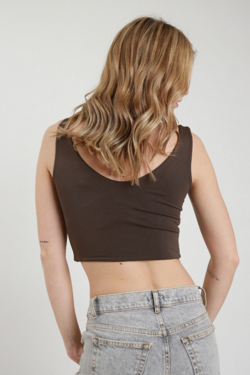 Crop Top in Viscosa Elasticizzata, con Scollo a V, Tessuto Doppiato.