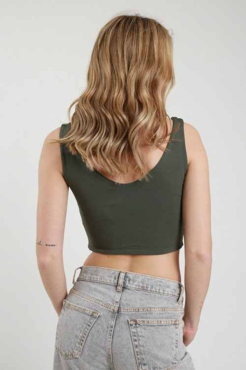 Crop Top in Viscosa Elasticizzata, con Scollo a V, Tessuto Doppiato.