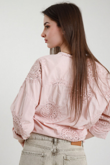 Camicia Collo alla Coreana Ricamata con Nodo Rimovibile.