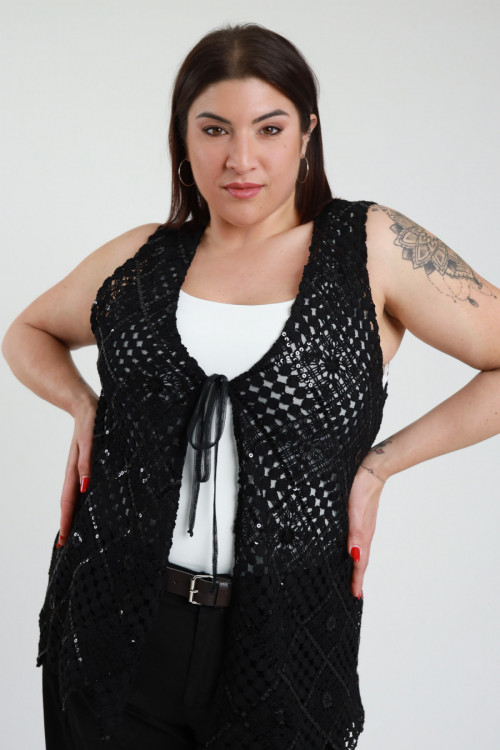 Gilet in Crochet con Micro Paillettes e Chiusura Lacci sul Fronte - Linea Curvy Susy Star.
