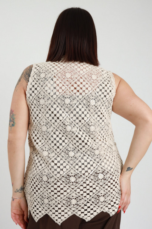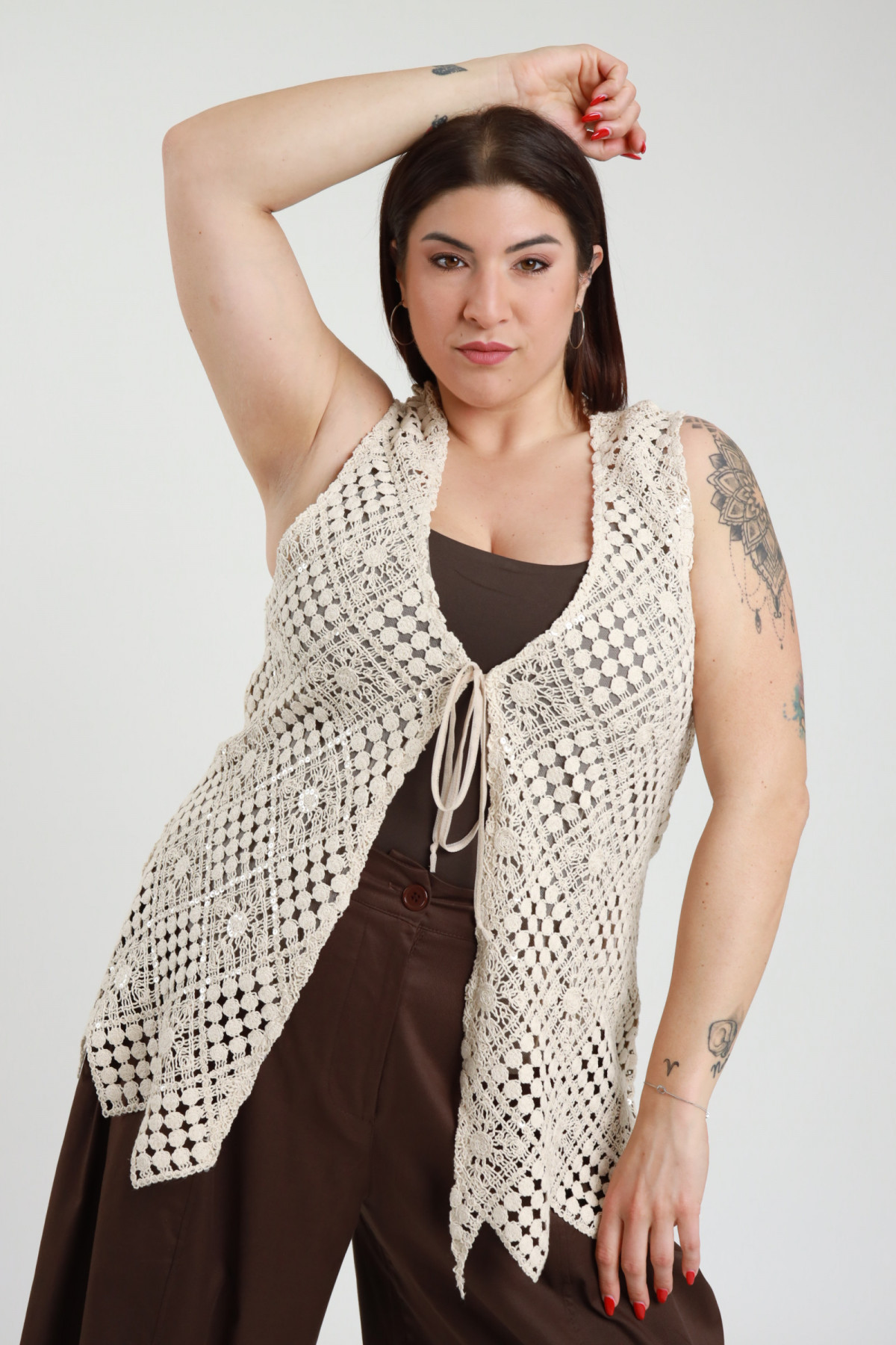 Gilet in Crochet con Micro Paillettes e Chiusura Lacci sul Fronte - Linea Curvy Susy Star.