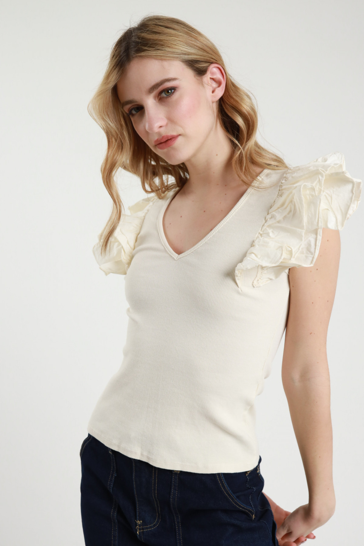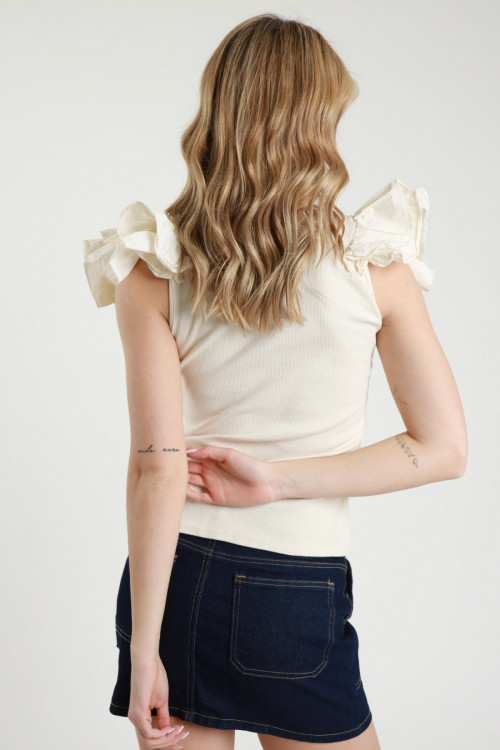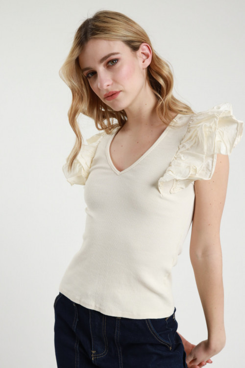 Canotta a Costine Scollo V con Rouches sulle Spalle.
