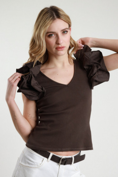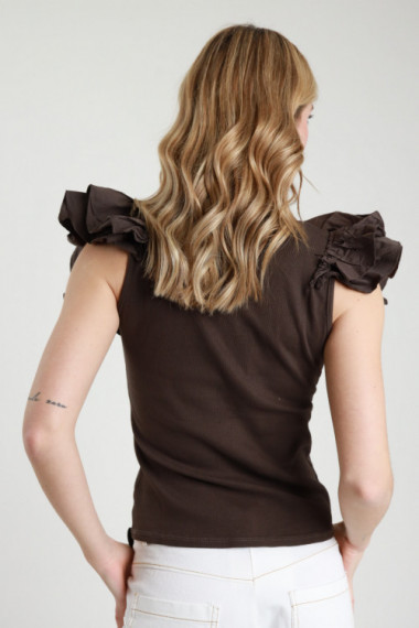 Canotta a Costine Scollo V con Rouches sulle Spalle.