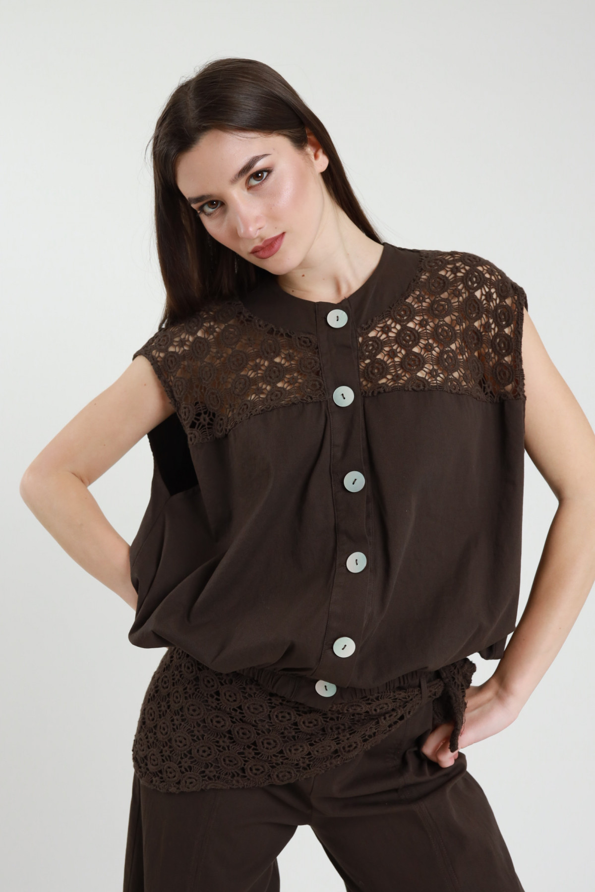 Gilet a Bomber in Cotone Elasticizzato con Crochet.