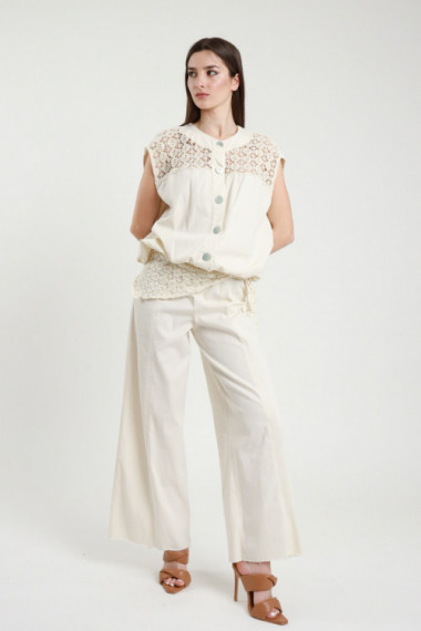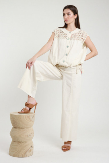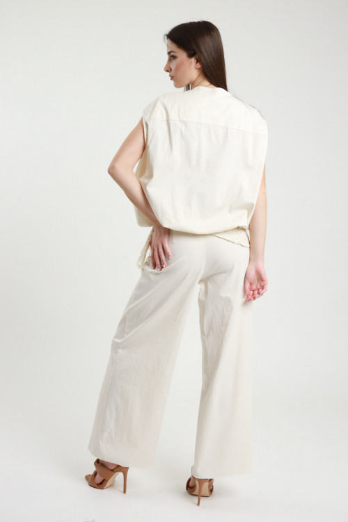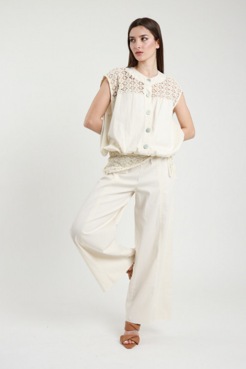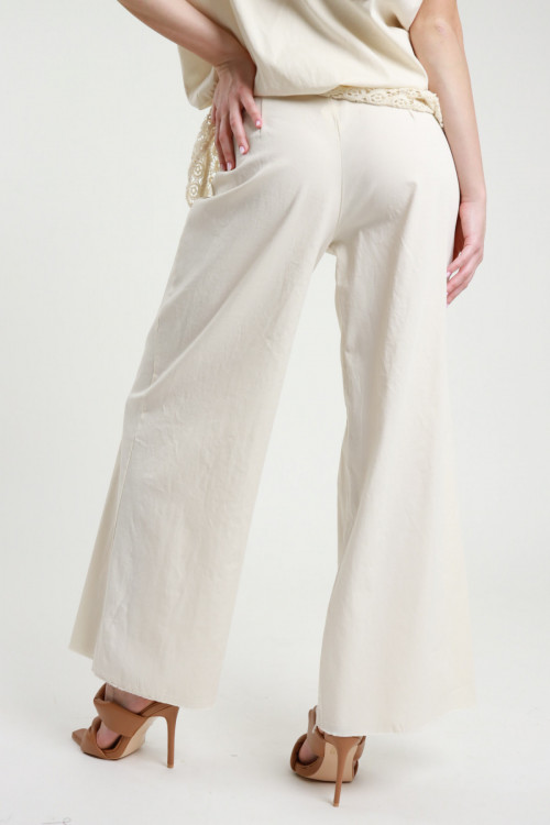 Pantalone a Palazzo in Cotone Elasticizzato con Foulard in Crochet.