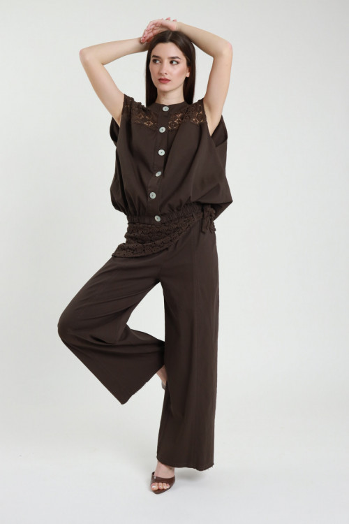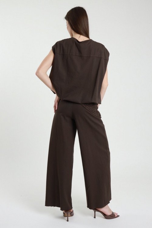 Pantalone a Palazzo in Cotone Elasticizzato con Foulard in Crochet.