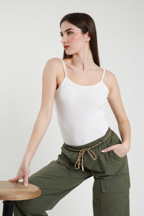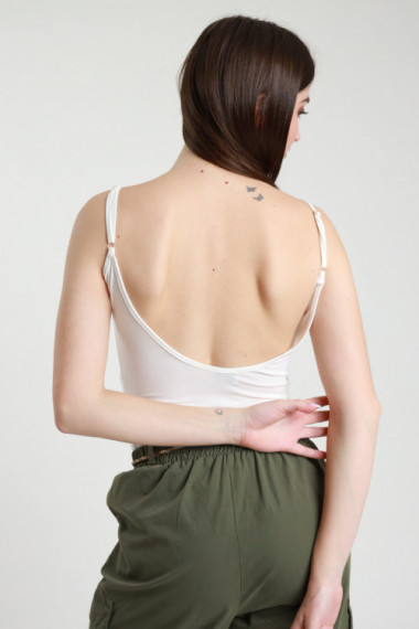 Body in Viscosa Elasticizzata con Spalline Strette Regolabili e Scollo Rotondo sulla Schiena.