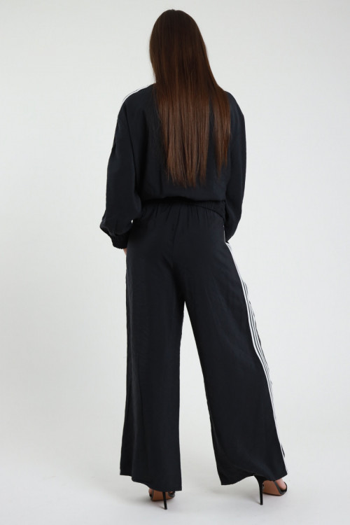 Pantalone Gamba Dritta con Bande Laterali, Elastico in Vita e Tasche Laterali.