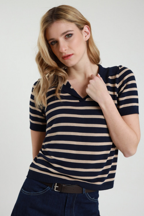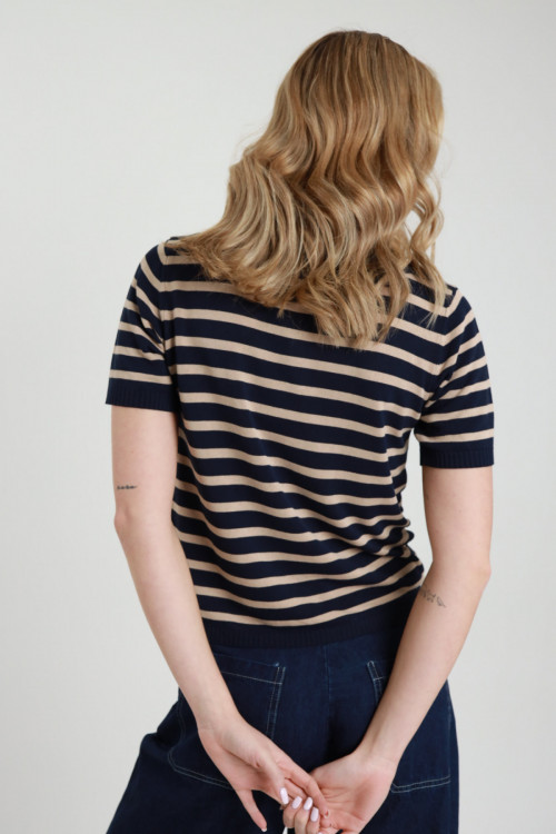 T-Shirt in Cotone Elasticizzato Girocollo a Mezze Maniche con Passamaneria Applicata.