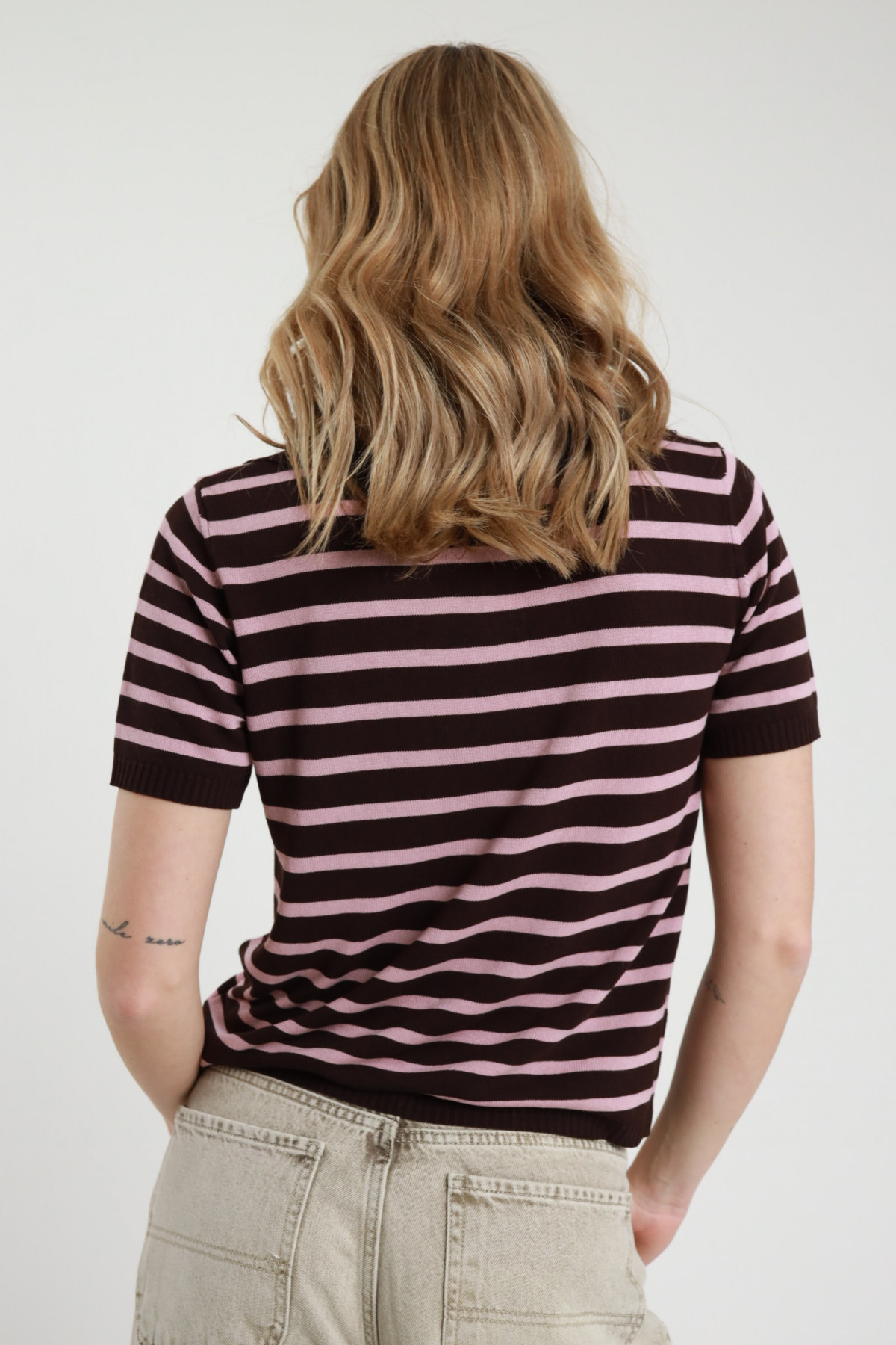 T-Shirt in Cotone Elasticizzato Girocollo a Mezze Maniche con Passamaneria Applicata.