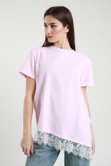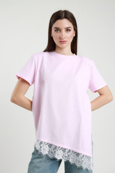T-Shirt Mezze Maniche Corte in Cotone, Asimmetrica con Pizzo sul Fondo.