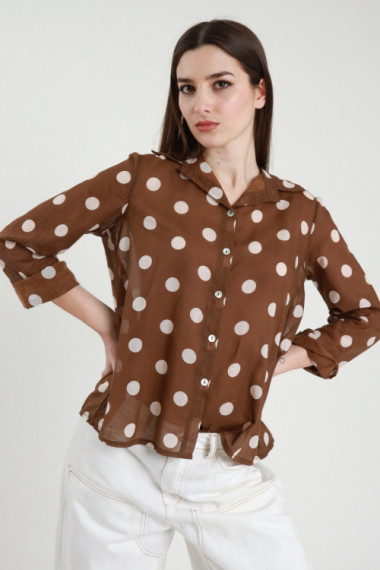 Camicia Semitrasparente in Cotone a Pois con Ripresa sul Retro.