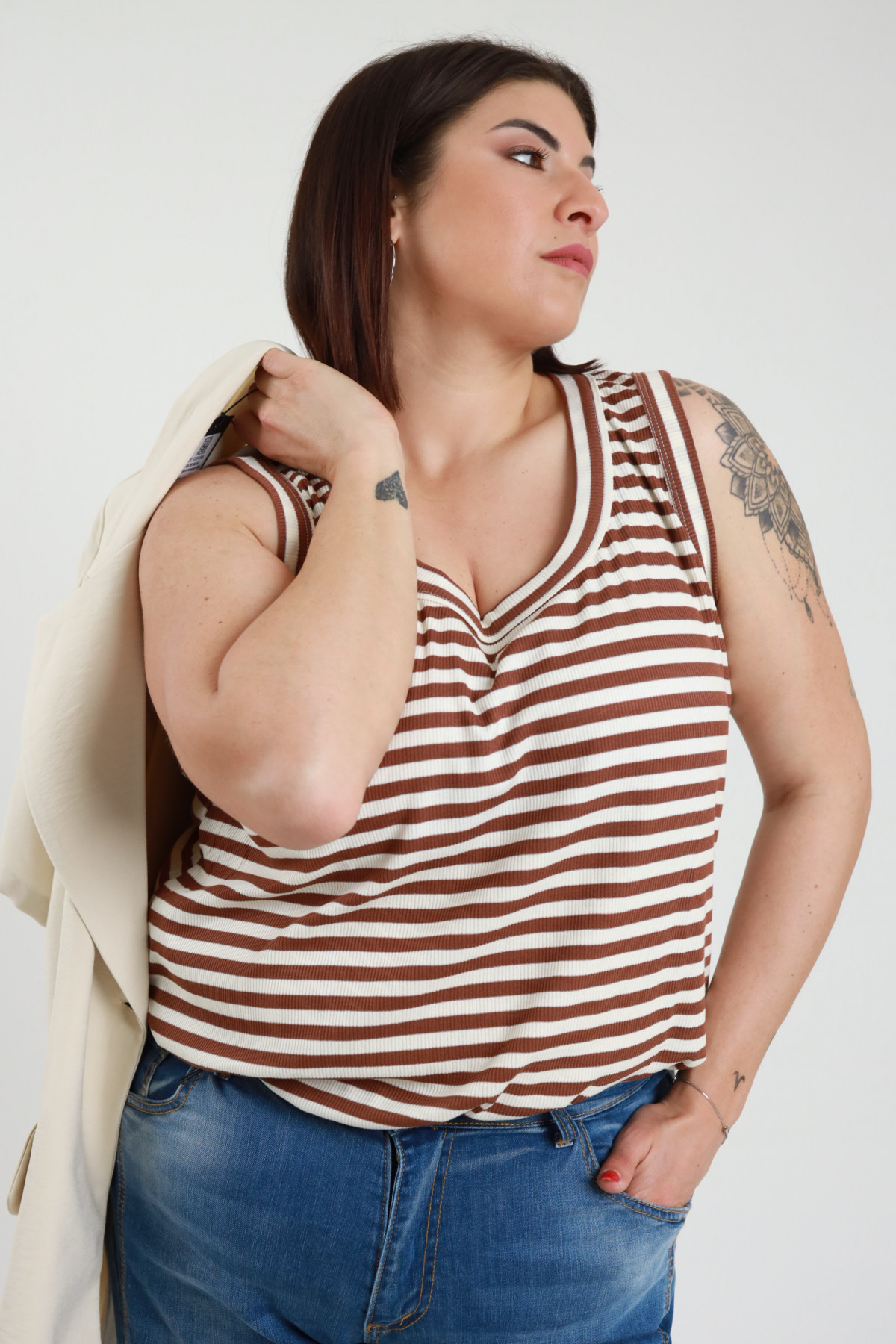 Canotta Over a Righe Scollo Rotondo - Linea