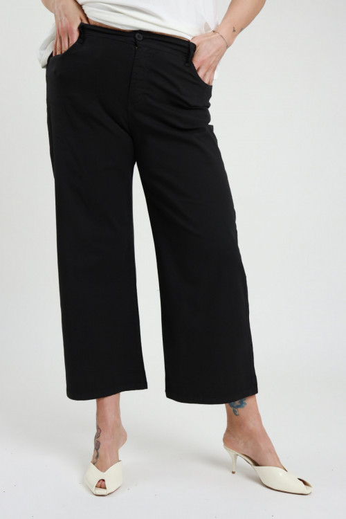Pantalone Cropped Tinto Capo con Tasche Laterali e sul Retro, Passanti in Vita, Chiusura Zip e Bottone - Linea Curvy Susy Star.