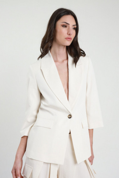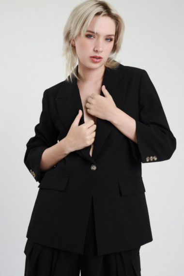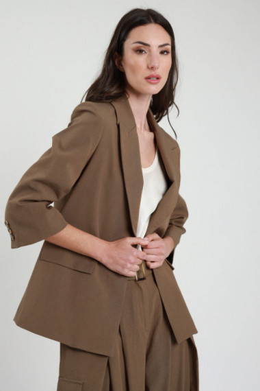 Übergroße Jacke mit 3/4-Ärmeln, klassischem Revers und Pattentaschen. 45%co 43%vi 12%ny+100%pl