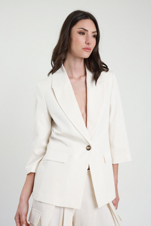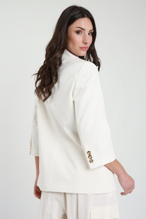 Giacca Taglio Over con Manica 3/4, Rever Classico e Tasche con Pattina.