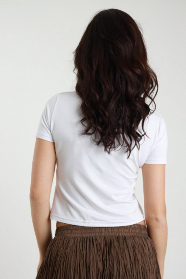 Top Corto in Viscosa Elasticizzata, Mezze Maniche, con Nodo sullo Scollo.