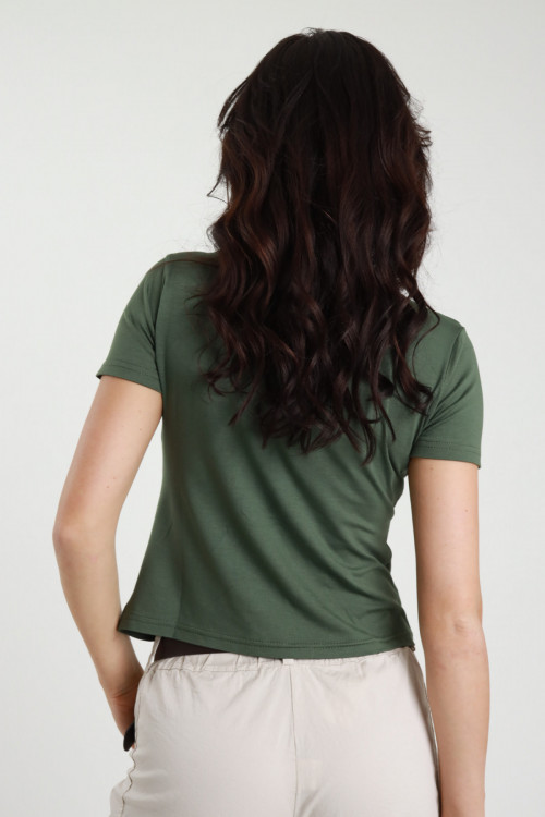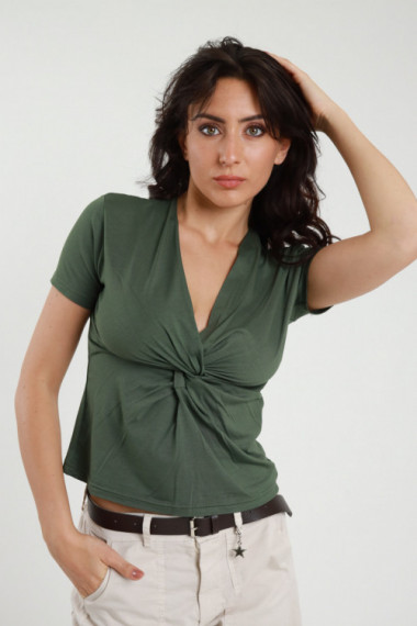 Top Corto in Viscosa Elasticizzata, Mezze Maniche, con Nodo sullo Scollo.