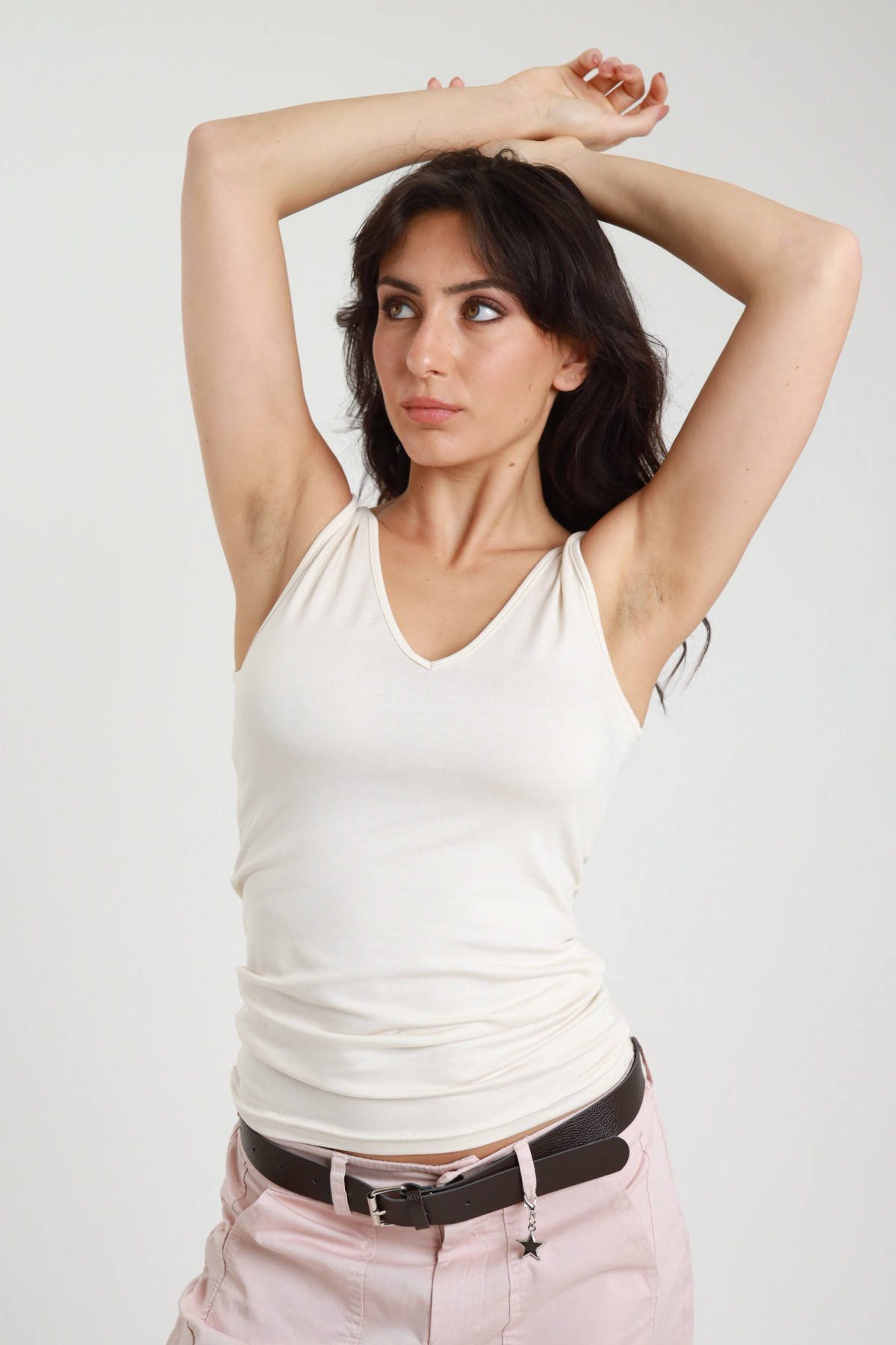 Canotta in Viscosa Elasticizzata con Doppio Scollo a V.