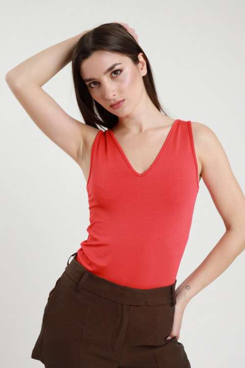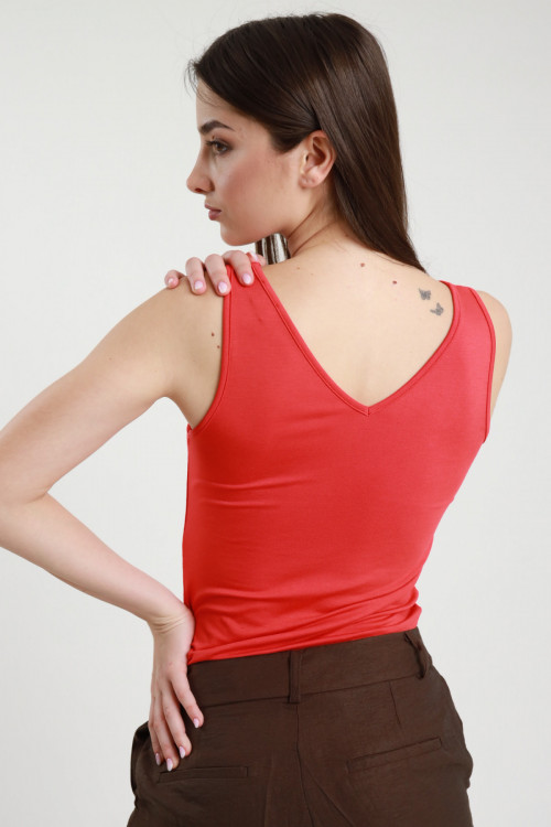 Canotta in Viscosa Elasticizzata con Doppio Scollo a V.