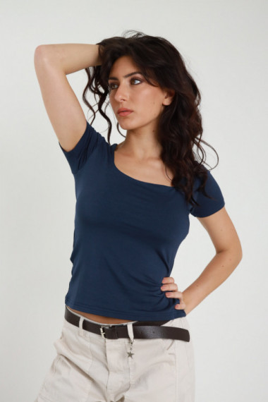 Top Corto in Viscosa Elasticizzata con Scollo Quadrato.