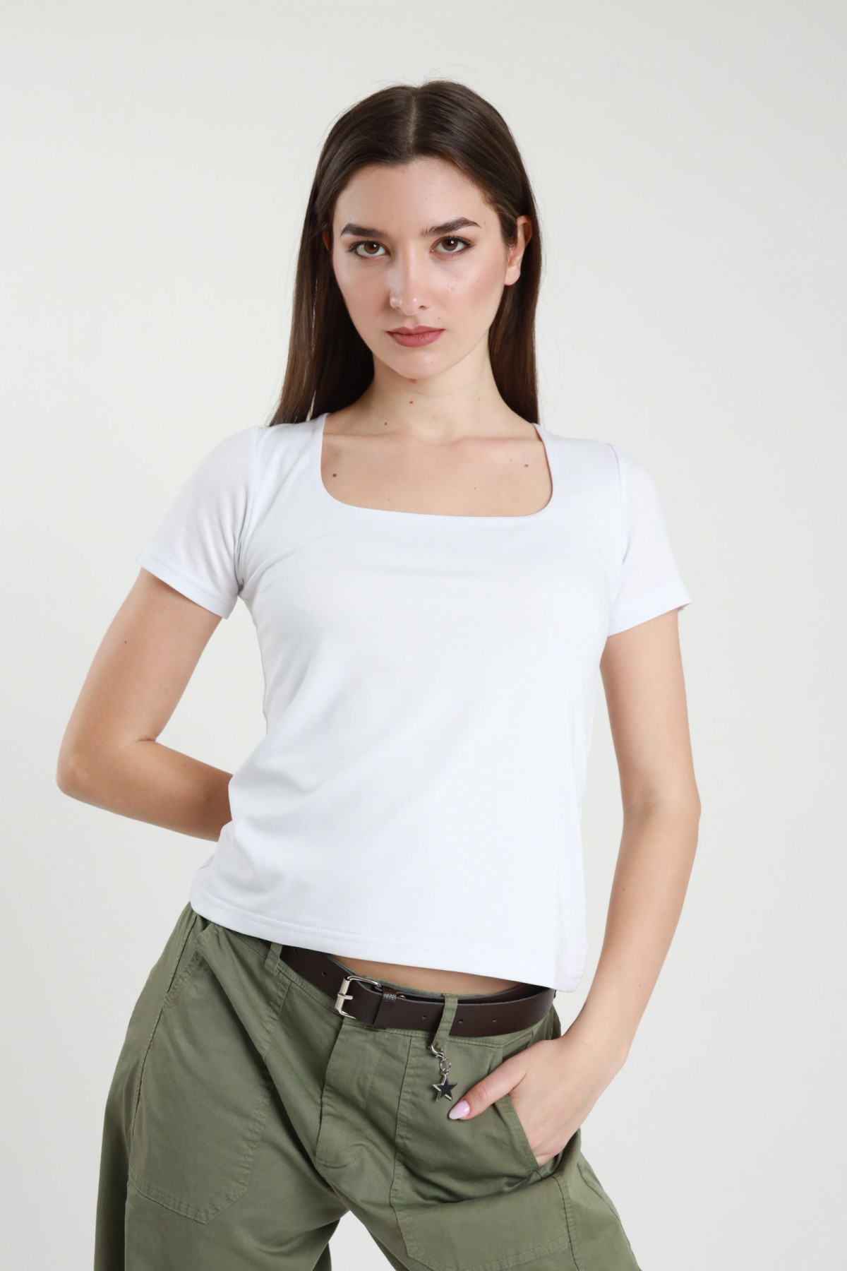 Top Corto in Viscosa Elasticizzata con Scollo Quadrato.