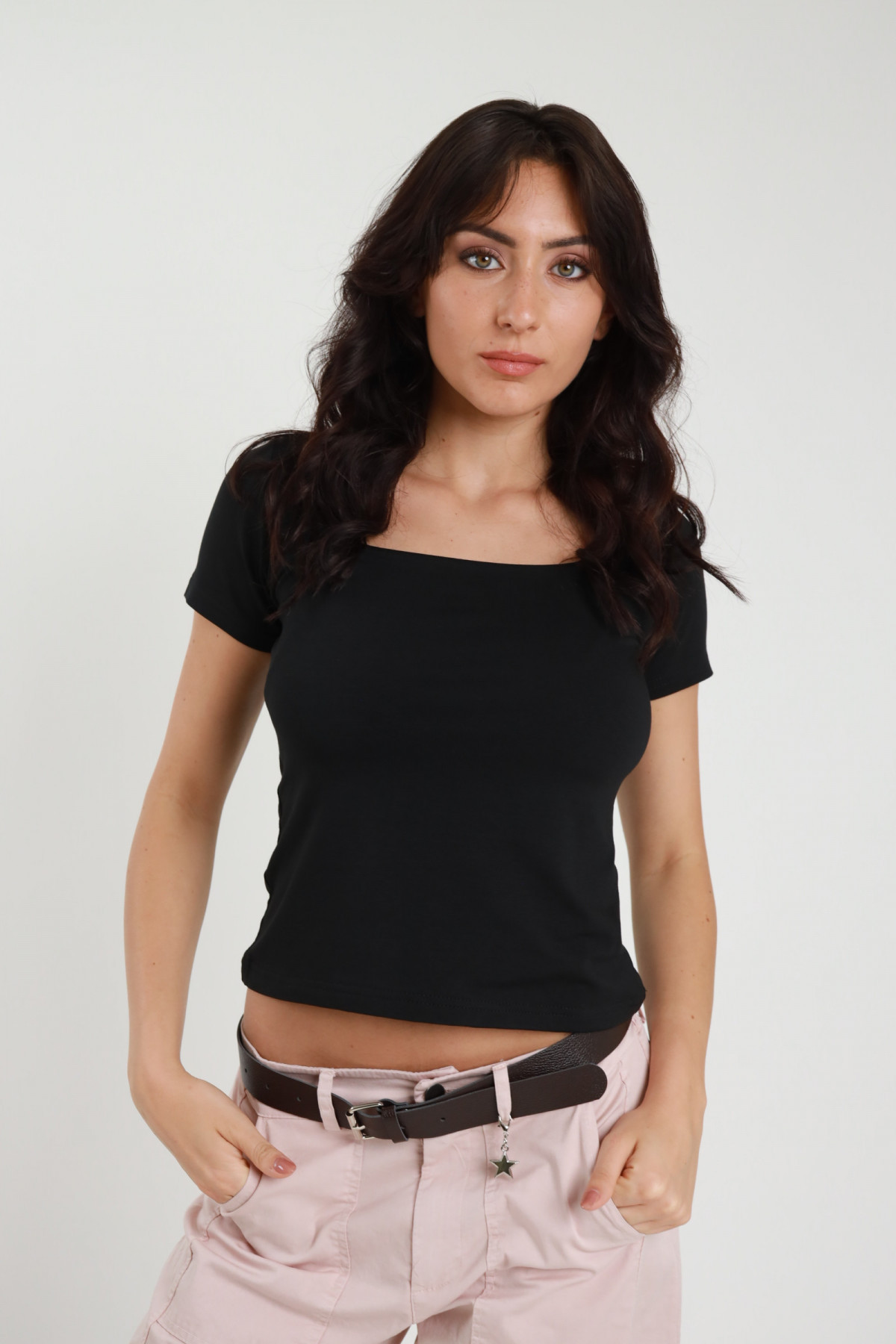 Top Corto in Viscosa Elasticizzata con Scollo Quadrato.