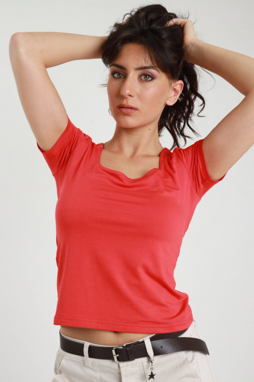 Top Corto in Viscosa Elasticizzata con Scollo Quadrato.