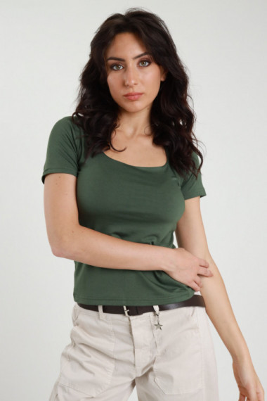 Top Corto in Viscosa Elasticizzata con Scollo Quadrato.