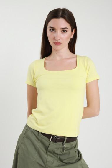 Top Corto in Viscosa Elasticizzata con Scollo Quadrato.