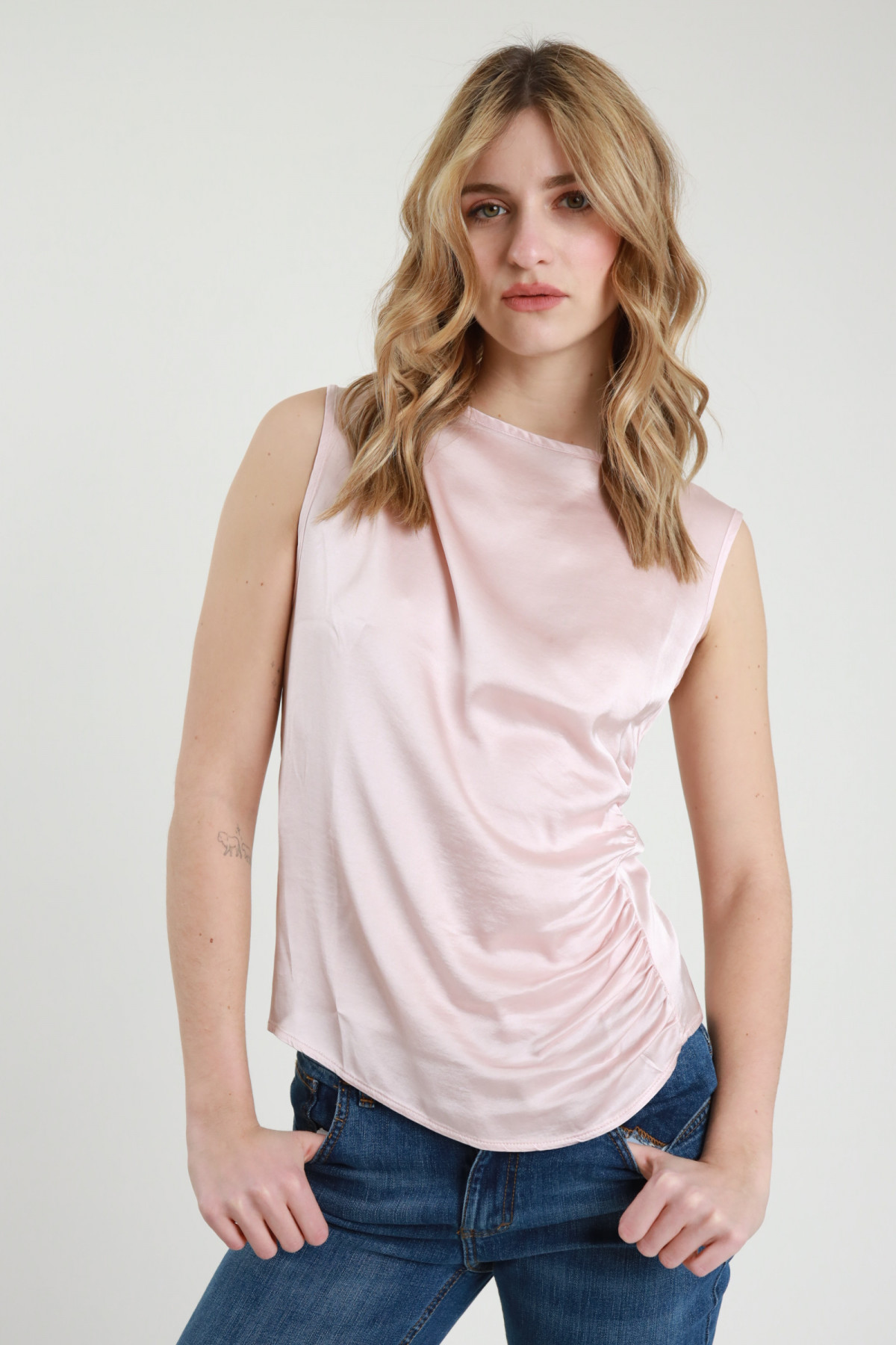 Ribbed tank top in stretch cotton, neckline in a little flower pattern. 95%co 5%ea