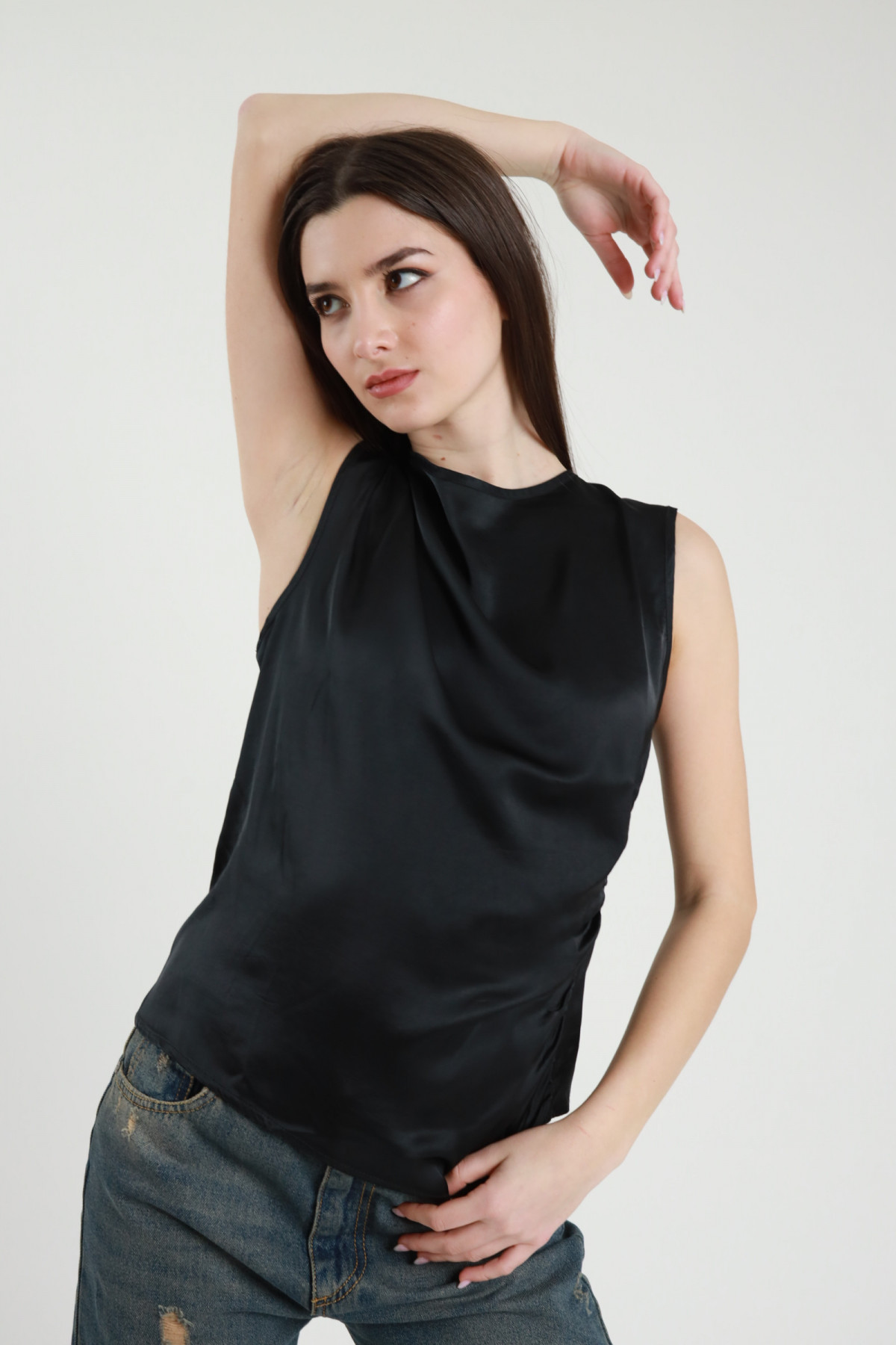Ribbed tank top in stretch cotton, neckline in a little flower pattern. 95%co 5%ea