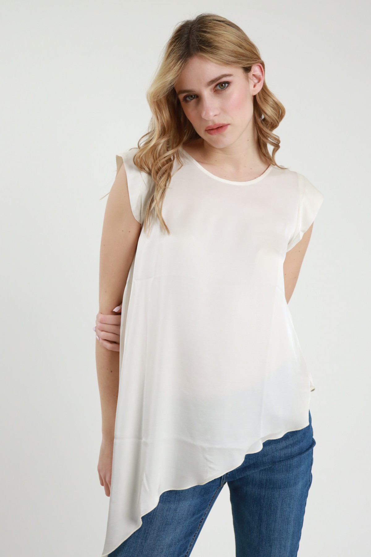 Top Smanicato in Satin Asimmetrico.