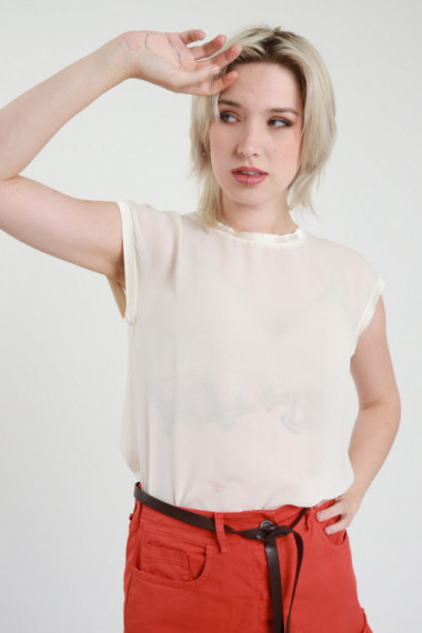 Blusa Maniche Corte in Georgette, Bordi in Simil Raso.