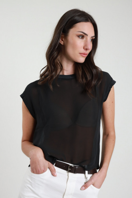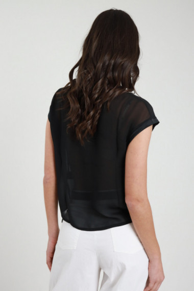 Blusa Maniche Corte in Georgette, Bordi in Simil Raso.