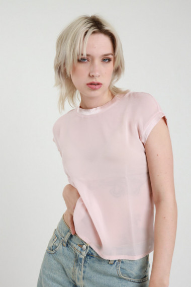 Blusa Maniche Corte in Georgette, Bordi in Simil Raso.