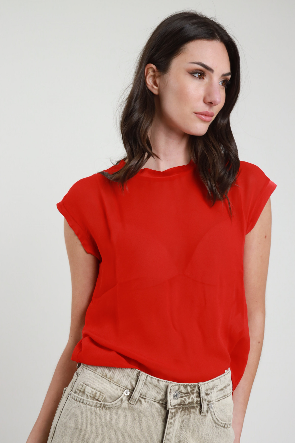Blusa Maniche Corte in Georgette, Bordi in Simil Raso.