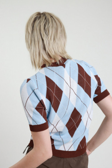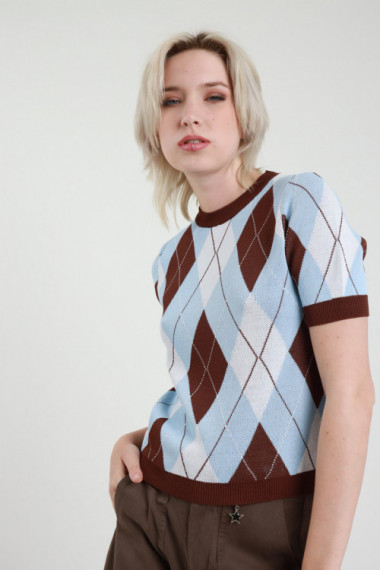 Gestrickte Weste mit Rauten, perforierter Rundhalsausschnitt. 80%co 20%pl