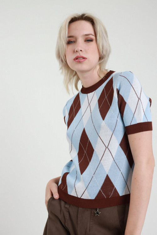 Pull in Viscosa Girocollo in Fantasia Rombi.