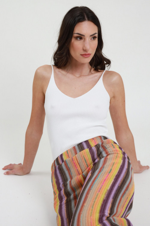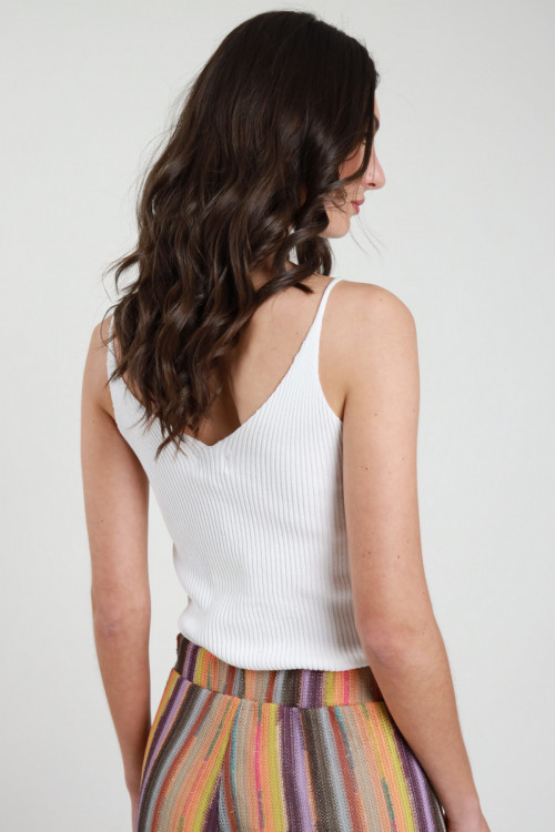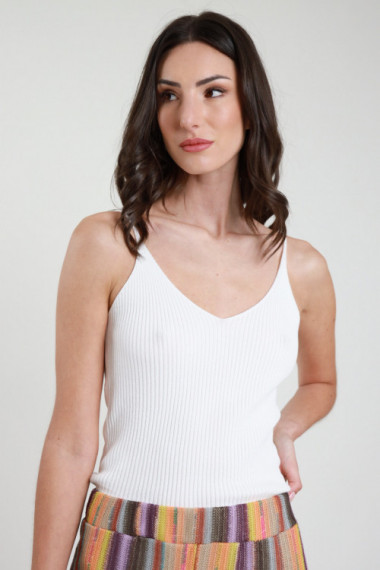 Canotta in Viscosa a Coste, Scollo V con Spalline Sottili.