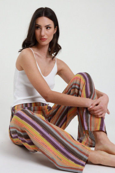 Pantalone Multicolor Gamba Dritta Semitrasparente con Pantaloncino Sottoveste, Elastico in Vita.