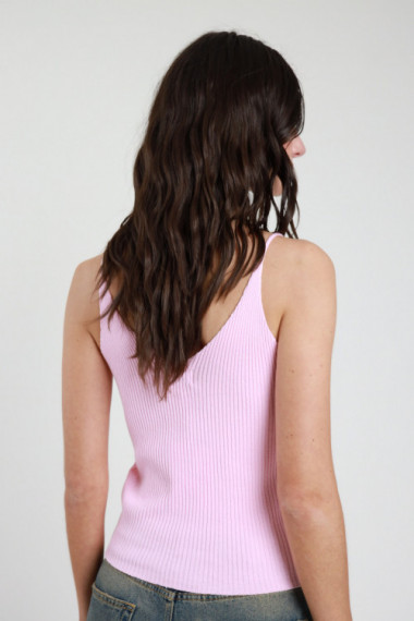 Canotta in Viscosa a Coste, Scollo V con Spalline Sottili.